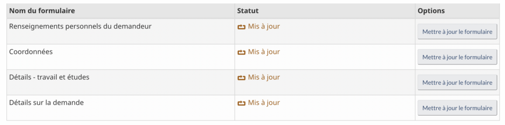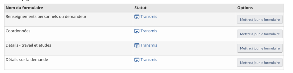 Là, vous verrez, pour chacune des 4 catégories du formulaire, la mention « Transmis ».