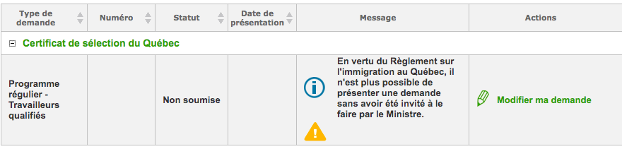 J'ai fait ma demande et c'est la que j'ai reçu la réponse "En vertu du Règlement sur l'immigration au Québec, il n'est plus possible de présenter une demande sans avoir été invité à le faire par le Ministre".