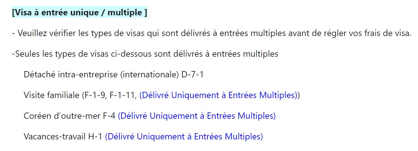 Lien officiel concernant les frais de visas coréens pour les Français.