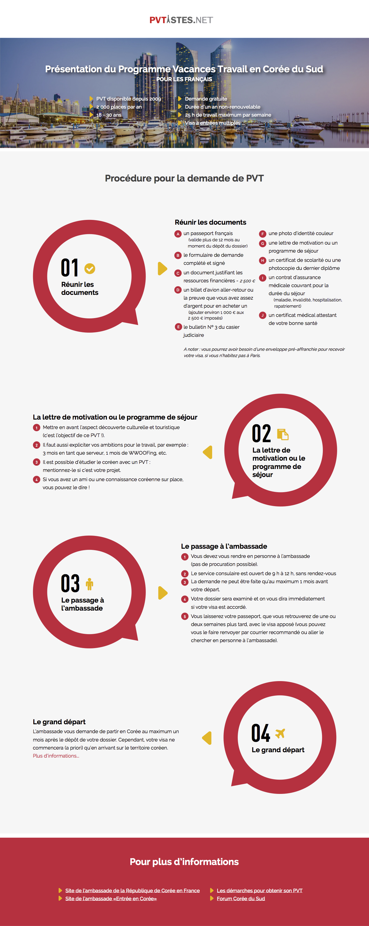 J'aimerais votre avis sur cette infographie, savoir si elle correspond bien aux démarches actuelles pour obtenir en PVT Corée pour les Français. Si vous avez des remarques ou des ajouts à faire, n'hésitez pas à laisser un commentaire !