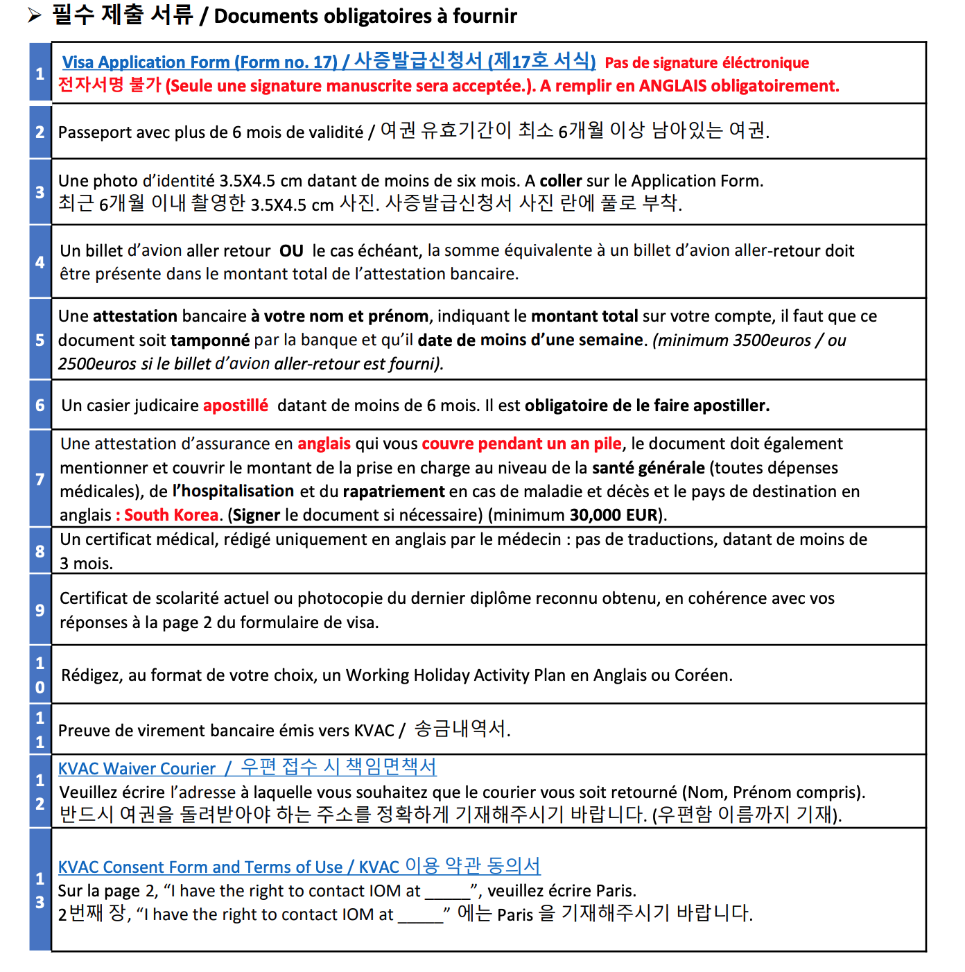 - Chapitre 2 : Les documents à fournir pour la demande de PVT Corée