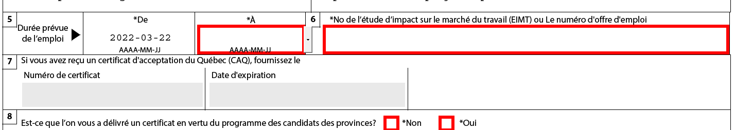Dans le formulaire imm5710, la durée prévue de l'emploi est demandée.Pièce jointe 35049