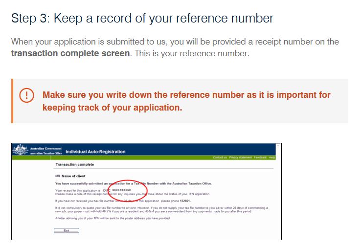 j'ai effectué aujourd'hui ma demande de TFN pour mon copain et moi. J'ai noté l'application reference number pour lui, mais j'ai oublié de noter le mien. Y'a t-il un moyen de retrouver ce numéro en attendant de recevoir son TFN définitif ? Merci