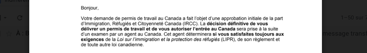 Bonjour j'ai reçu cela cette nuit? cela veut-il dire que mon permis de travail est accordé?