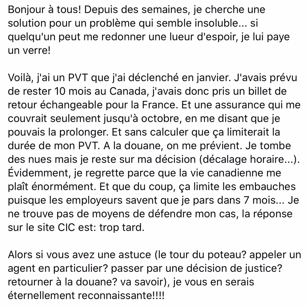 On parle des gens dans ta situation dans cet article : Tribune : n'acceptez pas votre invitation pour le PVT Canada si... - pvtistes.net