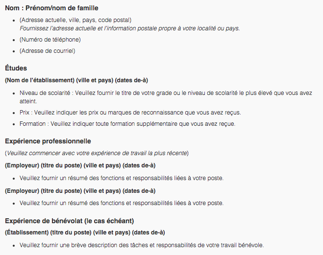 Dans tous les cas, n’oubliez pas de fournir également votre CV dans le cadre de votre demande de permis EIC. Sur votre CV, n’essayez pas de traduire votre profession ou de reprendre les termes de la CNP que vous avez trouvé pour remplir la partie Antécédents emploi. Décrivez au mieux, avec vos mots, les expériences professionnelles que vous avez connues. Si vous aviez fait une erreur dans la CNP (cela peut arriver et ça ne devrait pas remettre totalement en cause votre projet au Canada, rassurez-vous…), votre CV permettrait de mieux montrer aux autorités canadiennes les tâches que vous avez effectivement faites dans le cadre de vos emplois.