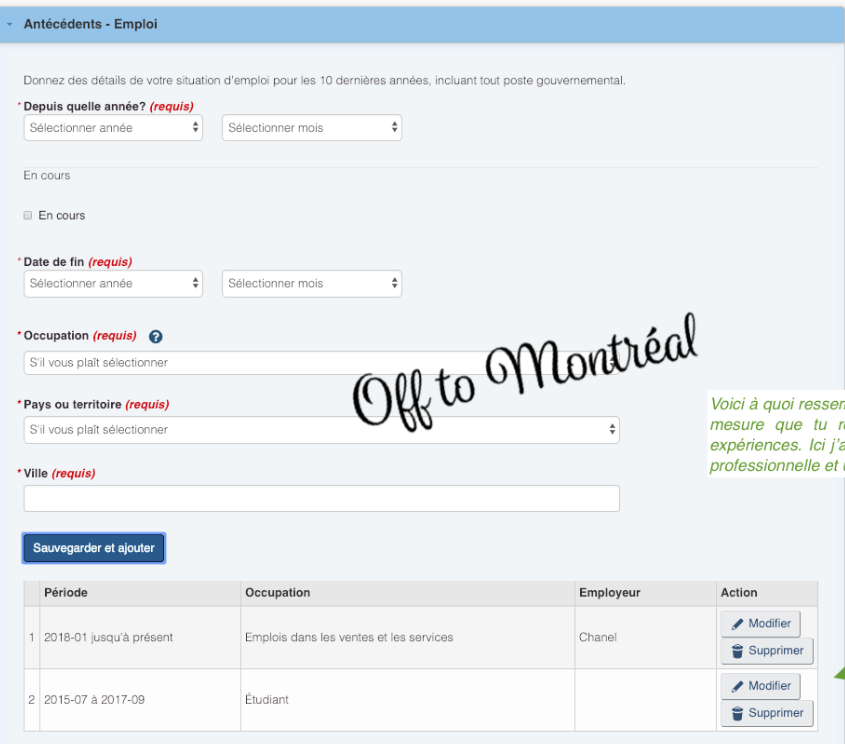 Je remplie actuellement la partie antécédents emplois et études pour ma demande de PVT et j'ai quelques doutes :