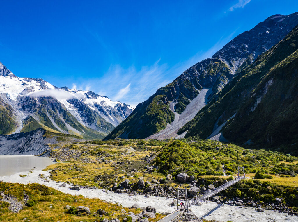 Closing out the New Zealand bucket list is one of the top national parks in the country, Aoraki Mount Cook. Part of the South West New Zealand World Heritage Area, there are hiking trails for all abilities open year-round. You can even hike on the glaciers in winter! From July-September, you can ski the extraordinary Tasman glacier. Aoraki Mount Cook is made up of glacial valleys and alpine landscapes, and also holds the record for the country’s highest mountain peaks. The best of the park’s scenery can be found on the popular Hooker Valley hike.