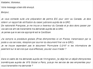 Dommage, je pensais que le Biométrie mise en place depuis Juillet permettait au gouvernement de vérifier mon casier canadien si nécessaire, et bien non. Bon, tant-pis je vais faire autrement.