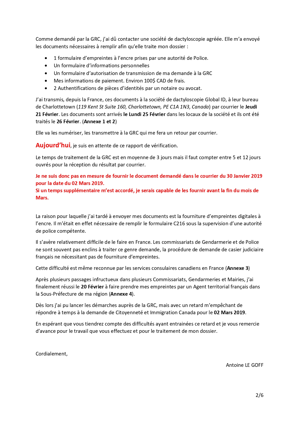 Quoi ? Qu'est-ce ? Une lettre me demandant un extrait de Casier judiciaire Canadien de la Gendarmerie Royale du Canada ? J'ai vécu presque un an et demi au Swagnay (Saguenay