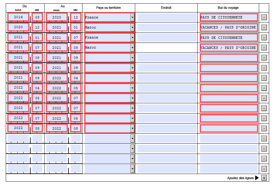 j'ai actuellement 8 voyage parce que je faisais pas mal d'aller et retour entre le Maroc (Pays de naissance de mes parents) et la France. Je faisais des