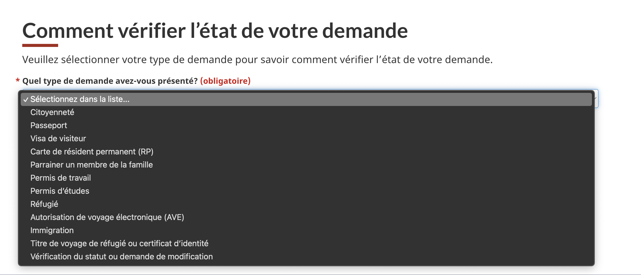 Désolé pour ma 2ème demande de suite mais je n'arrive pas à vérifier l'état de ma demande sur le site du gouvernement canadien, c'est peut-être un bug... En effet, je me connecte via ma clé CléGC, j'accepte les conditions d'utilisation, mais ensuite ça m'amène à une page qui me demande si je veux la version en français ou en anglais, je clique sur "Français", et ensuite ça m'amène à la page d'immigration et de citoyenneté, je clique sur "état de ma demande", là ça m'amène à une page qui me demande de sélectionner le type de demande, je clique "Travail" (il n'y a pas l'option EIC), et ensuite ça m'amène vers une page de demande de travail hors EIC... Aucun moyen d'accéder à la page de l'état de ma demande comme avant, je fais exactement la même chose qu'avant mais là ça ne marche plus ! Je joins quelques captures d'écran des pages sur lesquelles je tombe.