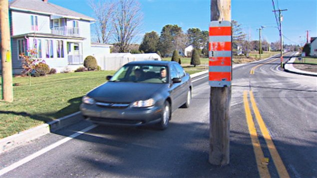 Cookshire-Eaton : un poteau électrique en plein milieu d'une route | Estrie | Radio-Canada.ca