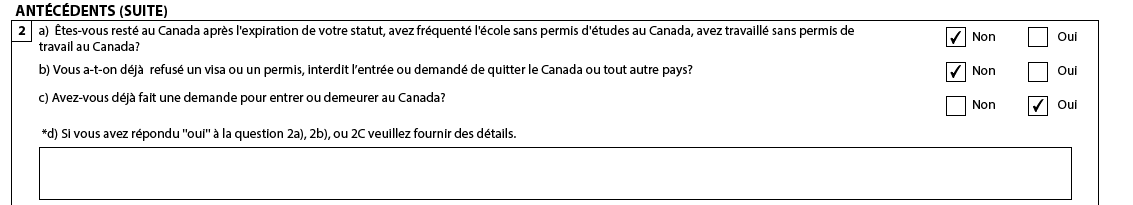 Question 2C : avez-vous déjà fait une demande pour entrer ou demeurer au Canada ?