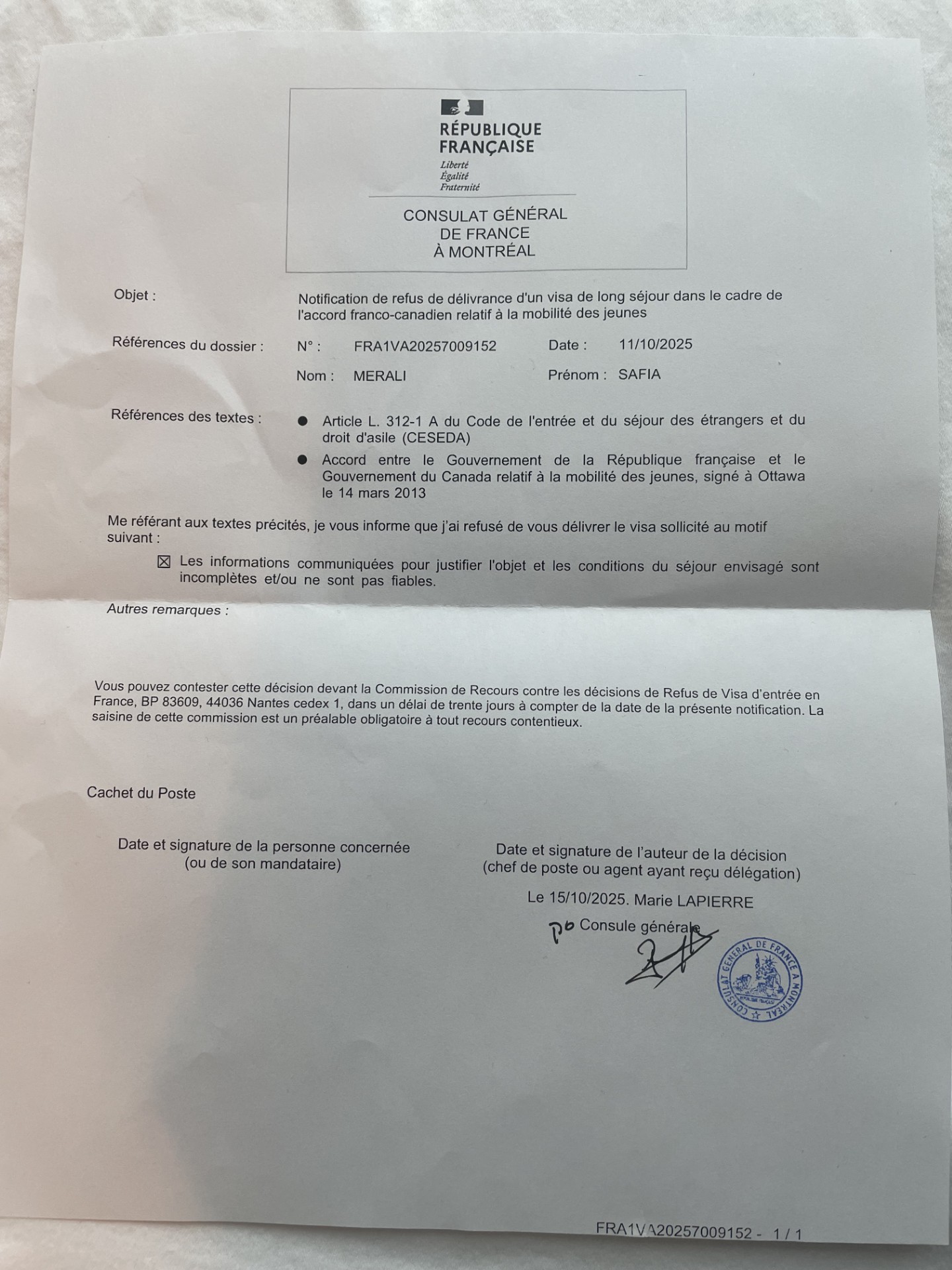 I would like to challenge the letter as this is my only shot at applying and it’s my dream to live in France for a year… does anyone have experience challenging a letter of refusal, or received the same message or can point me to maybe an immigration lawyer who can help me?