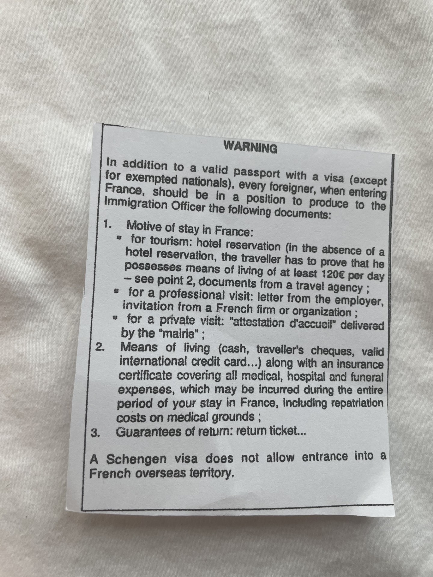 I also received a warning?? Which I don’t understand at all. I’ve been to France many times, always respected the rules, never used the medical system, and never been stuck anywhere without the means to leave. I’ve never even come close to overstaying regarding the Schengen visa rules… so I’m just spinning my wheels.