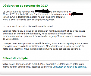 J'ai fait ma déclaration de 2016 et 2017, revenu québec a traité ça en juin et juillet (2016 en premier, y avait rien vraiment de déclaré car j'étais là juste un mois donc ça a été simple pour eux),