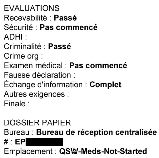 D'accord si tu veux, en attendant je me base sur les informations de IRCC et elles te contredisent, je te montre mon propre dossier, qui à les antécédents de criminalité de passé contre la sécurité non commencé car dernière étape du traitement, je n'ai pas non plus commencé la VM.