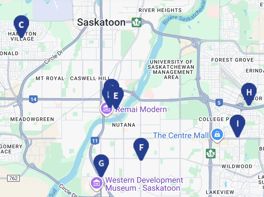 Et si vous décidez de traverser le pays, vous aurez aussi des guichets dans de plus petites villes, comme Saskatoon, en Saskatchewan !